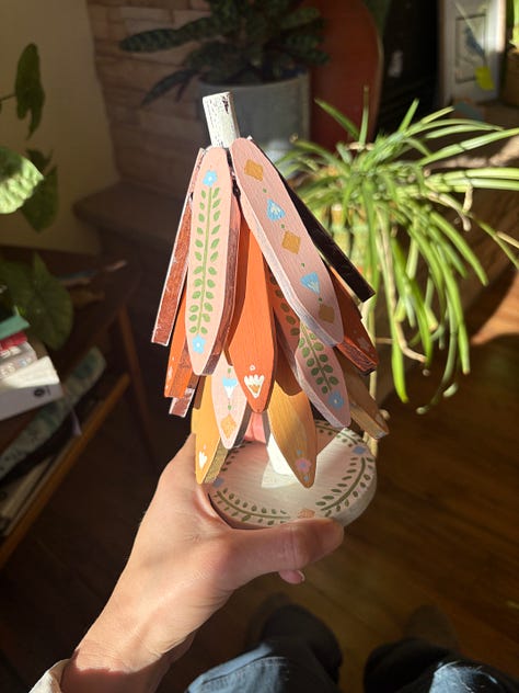 I stopped letting my fear of judgement stop me from trying (insert A Cinderella Story quote about the fear of striking out here). The joy of living alone is if I spend hours making something that is hideous, I get to just enjoy the process, maybe laugh at the silly thing I spent so much time on, and then go about my day. When I stopped judging myself, I stopped caring if others would too. If I have a thought, I find time and I give myself the time to try something. I let myself get inspired by instagram reels and Pinterest crafts without the pressure to make something entirely new. Experimenting with the color way of that kitchen and the shape of that clay and the motifs in that photo. If I have a silly idea, I let myself have the time to actually pursue it, regardless of outcome.